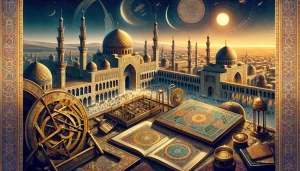 DALL·E 2024-02-21 12.01.29 – Create a horizontal image that encapsulates the essence of the Umayyad Caliphate period in Islamic history. The scene should extend to include panoram 0 on 21 Şubat 2024